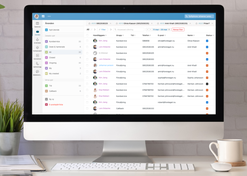 Ärendehantering för e-post, sms & telefonväxel i samma system. Samla dina kundkontakter på ett ställe.